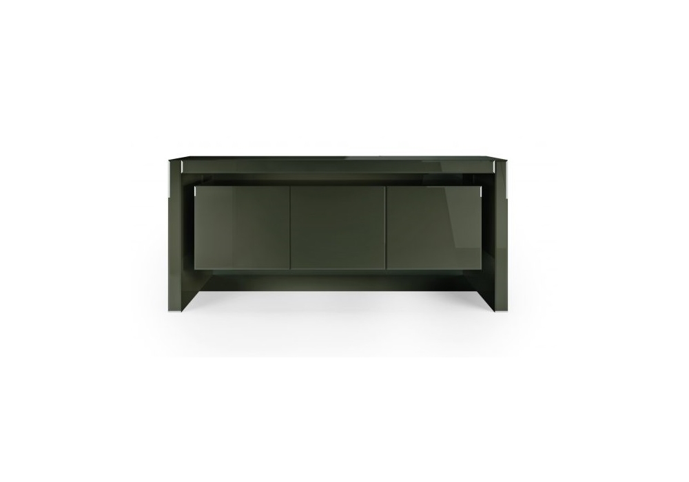 Avantgarde designed by Reflex Angelo is a sideboard in shiny lacquered wood with application of bevelled lacquered glass on top and fronts. Back in white matt finish. Storage unit with two or three doors with push-pull opening or with optional crystal or Murano glass handles.