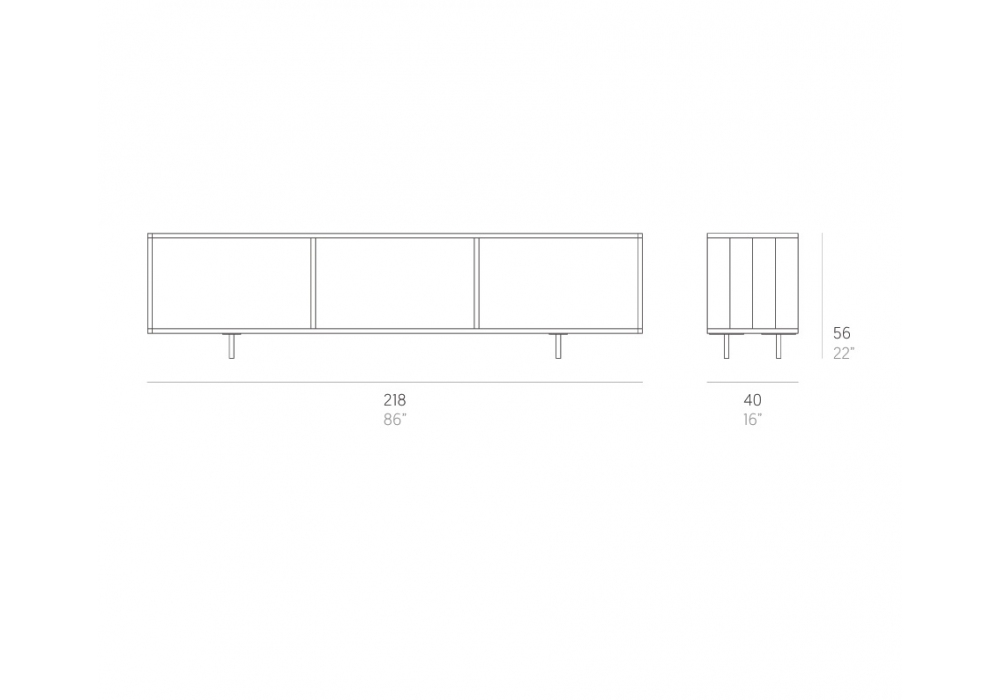 GBmodular designed by José A. Gandía-Blasco Canales for Gandia Blasco is a sideboard made in etched anodized aluminium, smooth or ribbed finish. Doors are made in Iroko wood or tempered glass. Available in different finishes.
