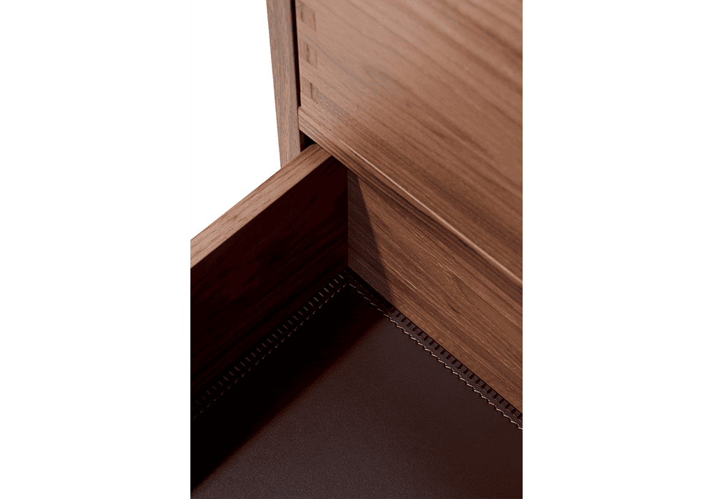 Wood-In designed by Piero Lissoni for DePadova is a storage unit with a structure and drawers in poplar blockboard veneered in Canaletto walnut or Dark oak, finished with transparent varnish. The drawers, with comb joints in solid wood, slide on guides with a cushioned mechanism and push “tip-on” opening. Feet in burnished steel with adjustable glides. Top in marble treated with a water-repellent or matt polyester finish or in wood in the same finish as the structure.
