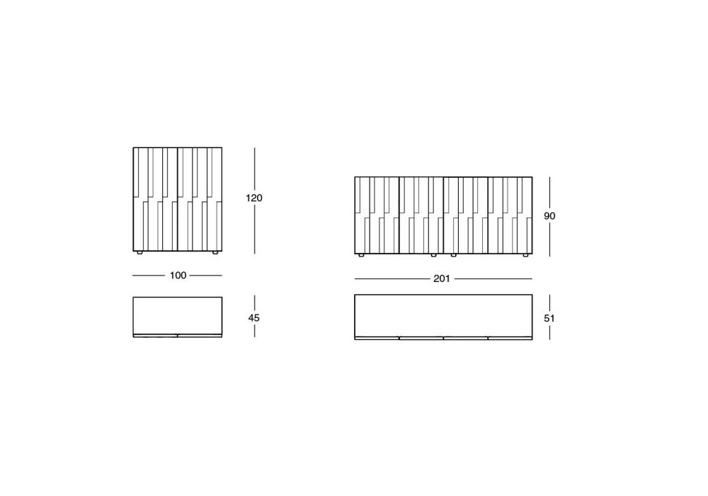| Dimensions | 100 x 45 x H 120 cm; 201 x 51 x H 90 cm. |