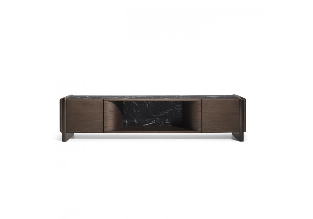 Midday designed by GamFratesi for Molteni&C is a sideboard with a wooden frame available in a glossy lacquered or wood finish. The top and back panel are coordinated in glossy lacquer, wood, or marble. The legs are glossy lacquered to match the body. The interior is matte lacquered, but there are no shelves.