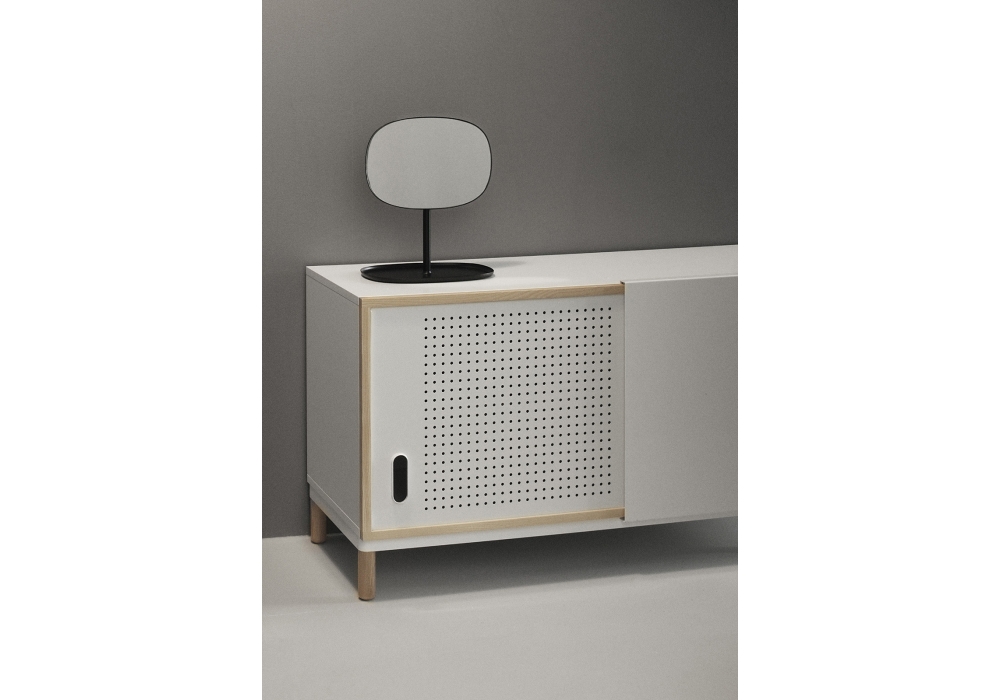 Kabino, designed by Simon Legald for Normann Copenhagen is a sideboard, with quadrangular structure in oak combined with MDF and aluminum, available in gray or white colors. Kabino is available in two different sizes.