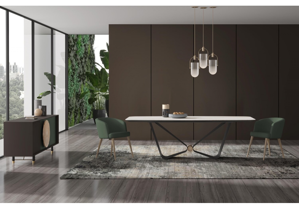 Moore designed by Gualter Torres for Gual Design is a sideboard with 3 or 2 matt lacquered doors.Each compartment is equipped with an internal glass shelf. The internal drawer can be added as an accessory. Feet in black painted iron and gold stainless steel. Available in different finishes and dimensions.