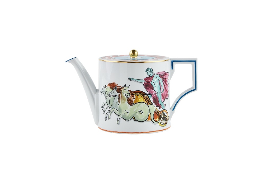 Teiera con Coperchio Il Viaggio di Nettuno designed by Luke Edward Hall for Ginori 1735 is a decorated teapot. With lid.