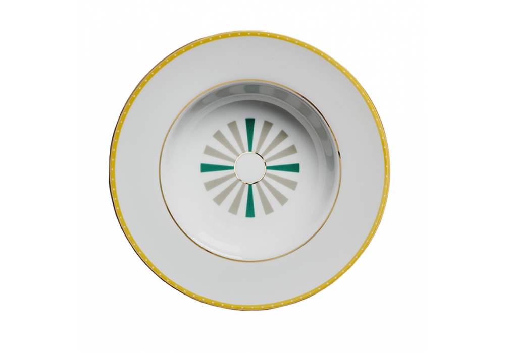 Guia produced and signed by Reflections Copenhagen is a porcelain pasta plate with various and extrovert decorations with graphic inspiration from Art Nouveau.