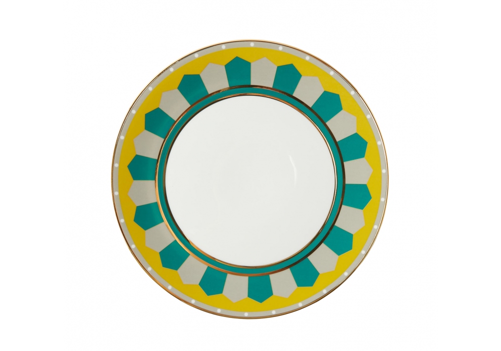 Lagos produced and signed by Reflections Copenhagen is a porcelain dinner plate with various and extrovert decorations with graphic inspiration from Art Nouveau.