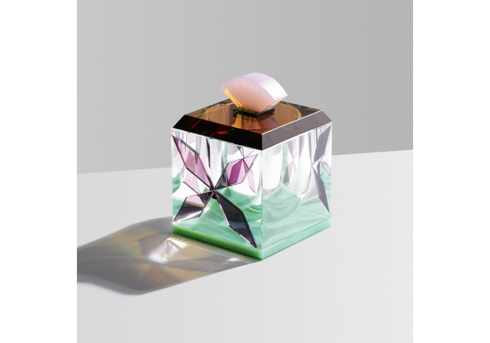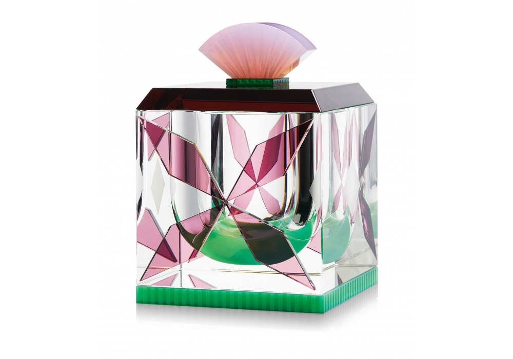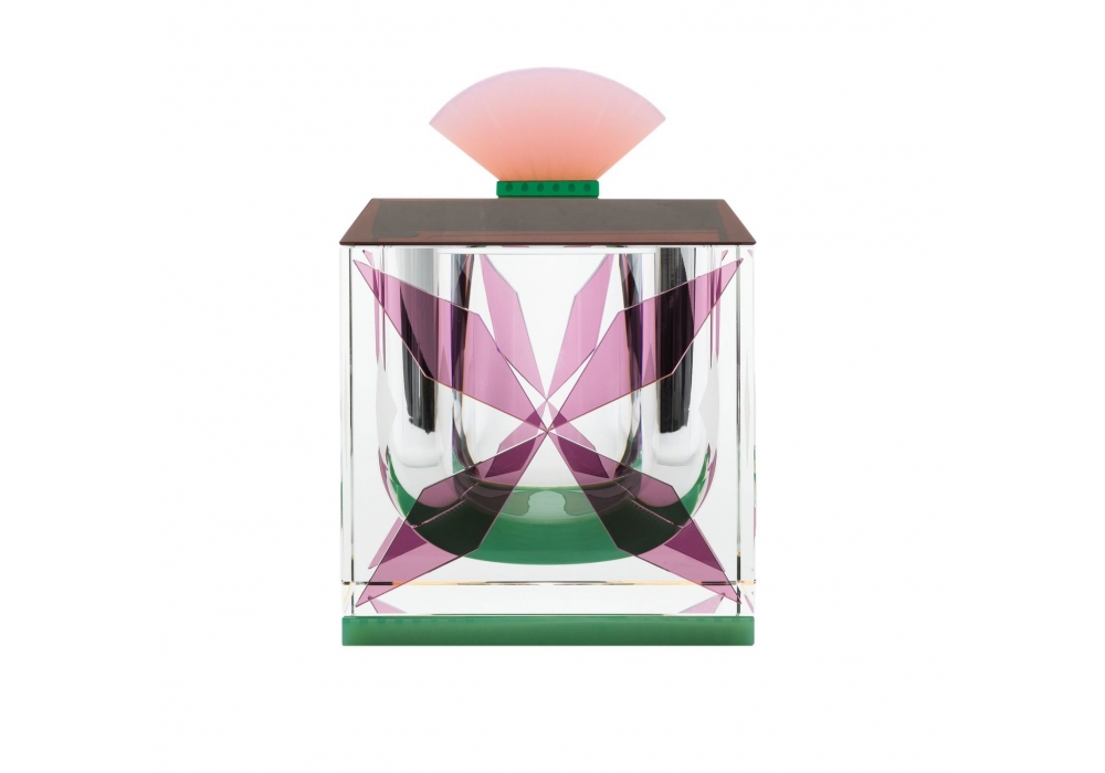 Wilson produced and signed by Reflections Copenhagen is an ice bucket entirely structured in hand-crafted mint, transparent and blush crystal.