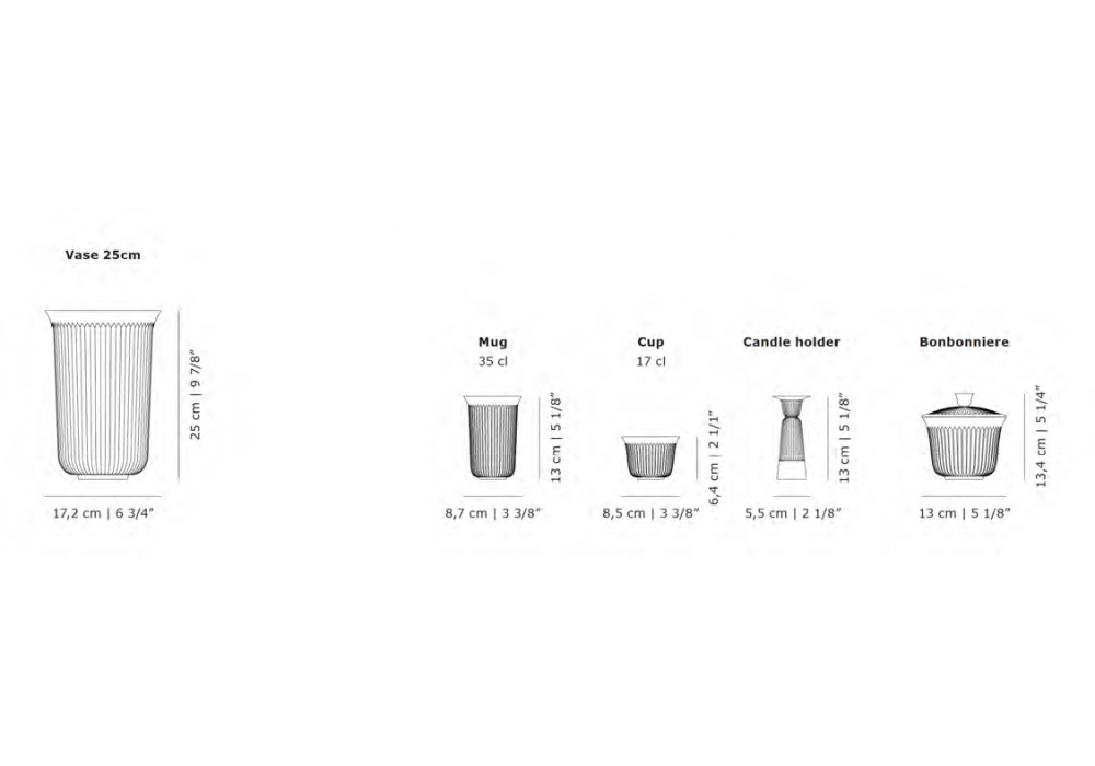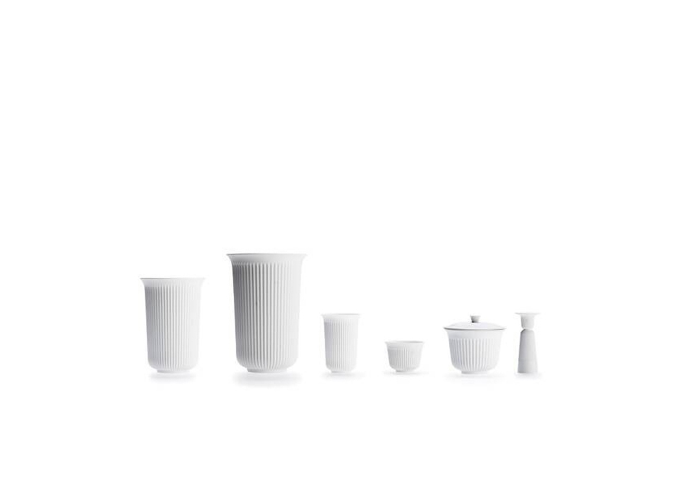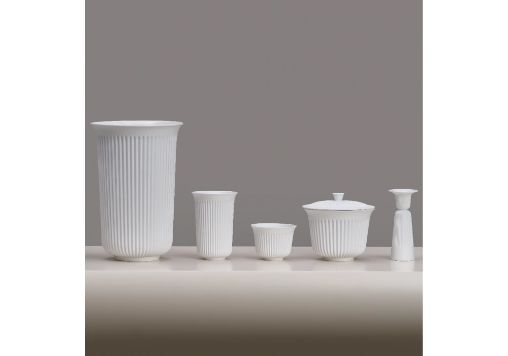 Tsé designed by Pili Wu for Karakter is a hand-polished porcelain service. Composed of a vase, cup, mug favor and candle holder.