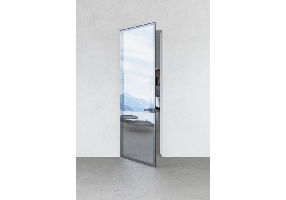 Como Vetro Doppio designed by Viva is a swing door with double glass, complete with aluminum door and frame. Available in different finishes.