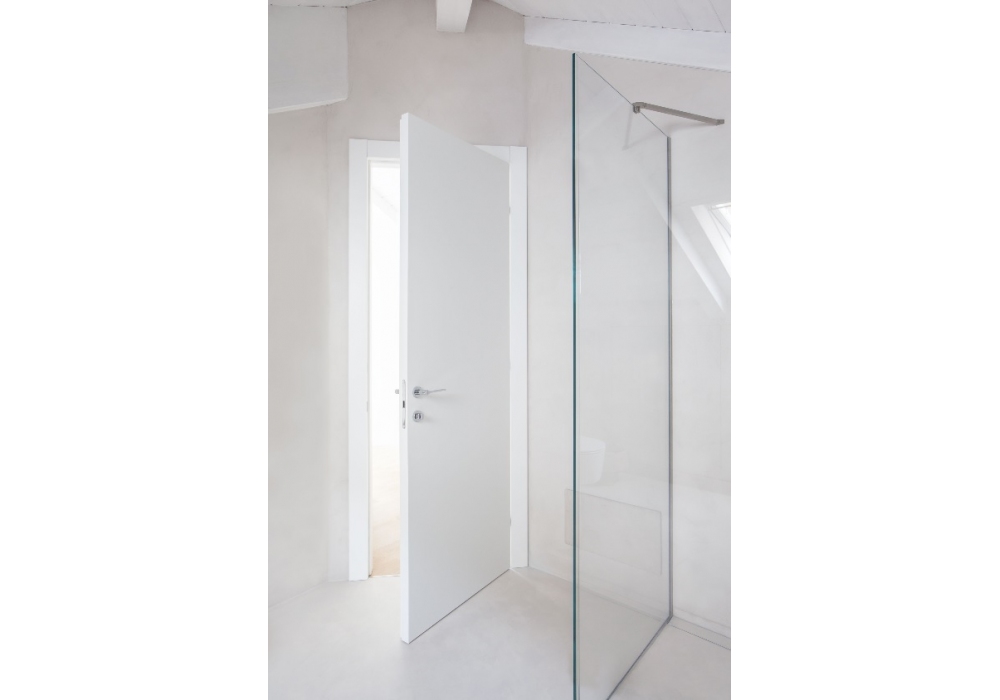 V1 designed by Viva is a swing door complete with door, jambs and architraves. Glossy or matt lacquer. Available in different finishes and versions.
