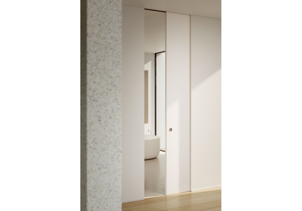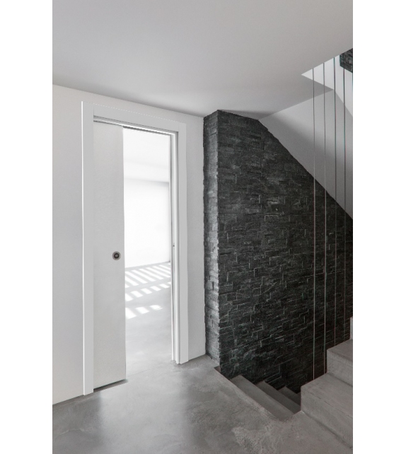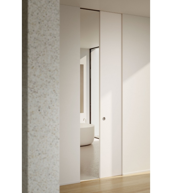 VSI designed by Viva is a sliding door complete with door, jambs and architraves. Glossy or matt lacquer. Available in different finishes and versions.