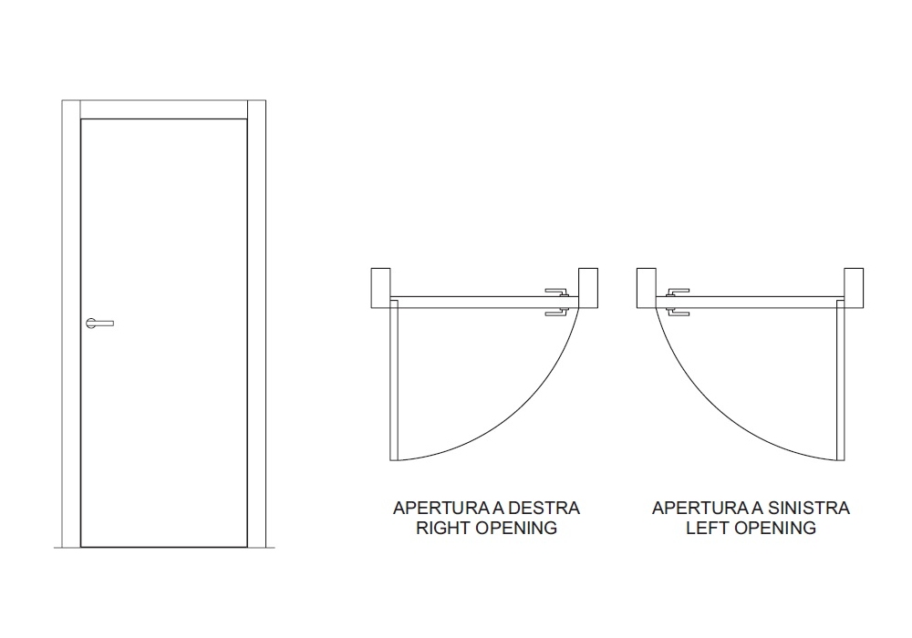 V50 designed by Viva is a swing door complete with door, jambs and architraves. Matt lacquer, available in different finishes.