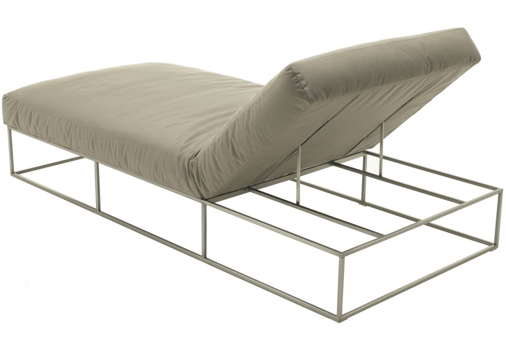 Ile Club designed by Piero Lissoni for Living Divani is a daybed. Seat chassis in lacquered steel with coated rubber elastic straps. Backrest in plywood panel adjustable through a mechanism. Seat and back cushions padded with differentiated density polyurethane foam and Visco-soft “Xtra-pur”, covered with a quilted mat in prewashed and sterilized goose down, stitched into separate compartments, or covered with acrylic fibre layers.
