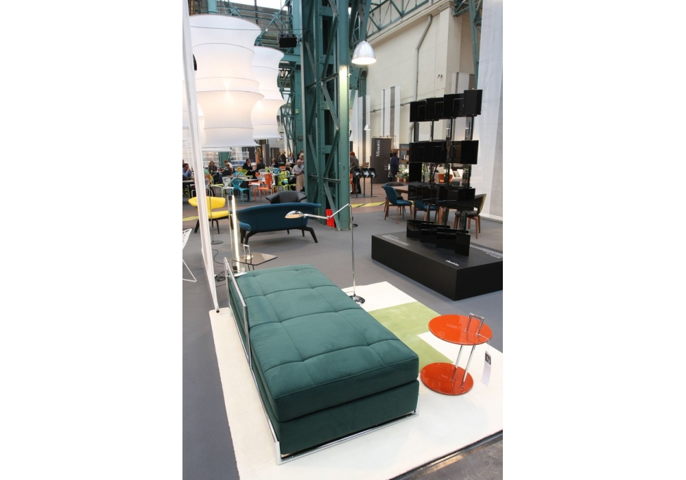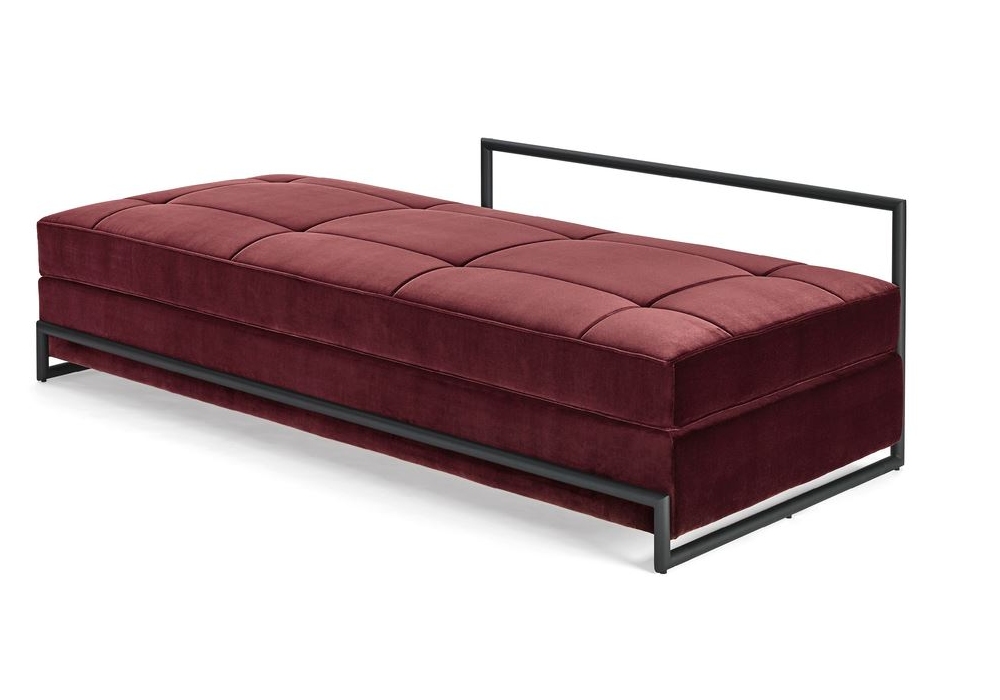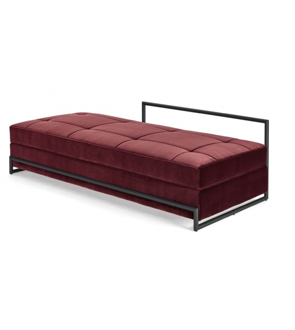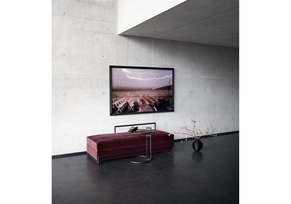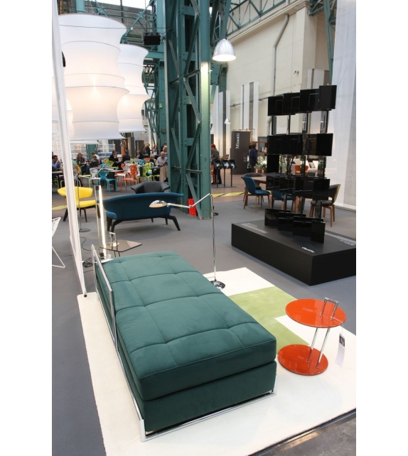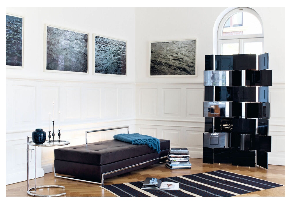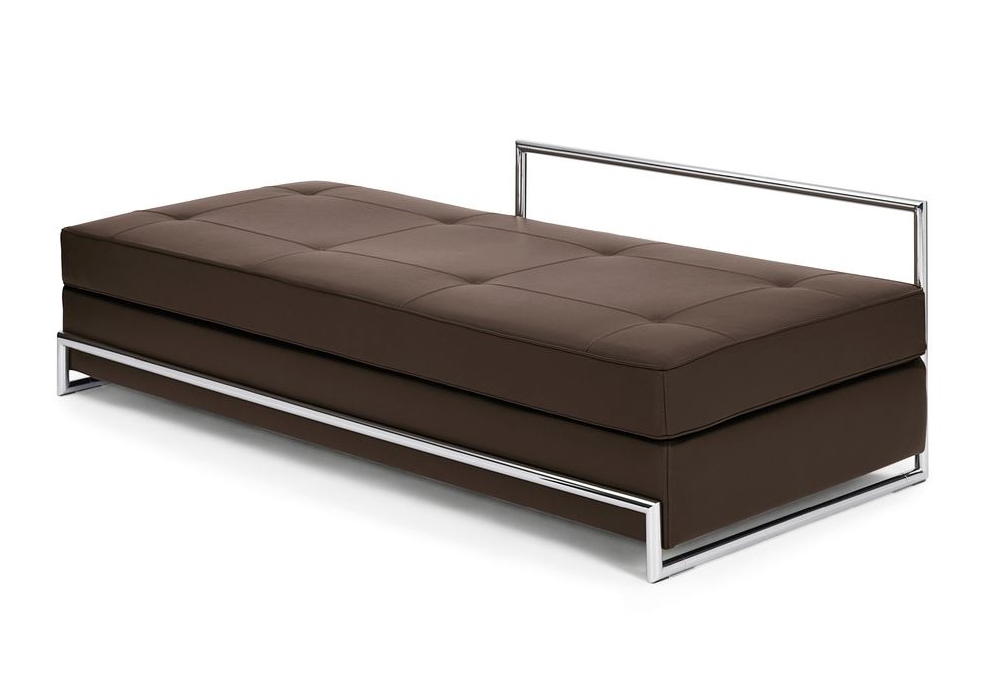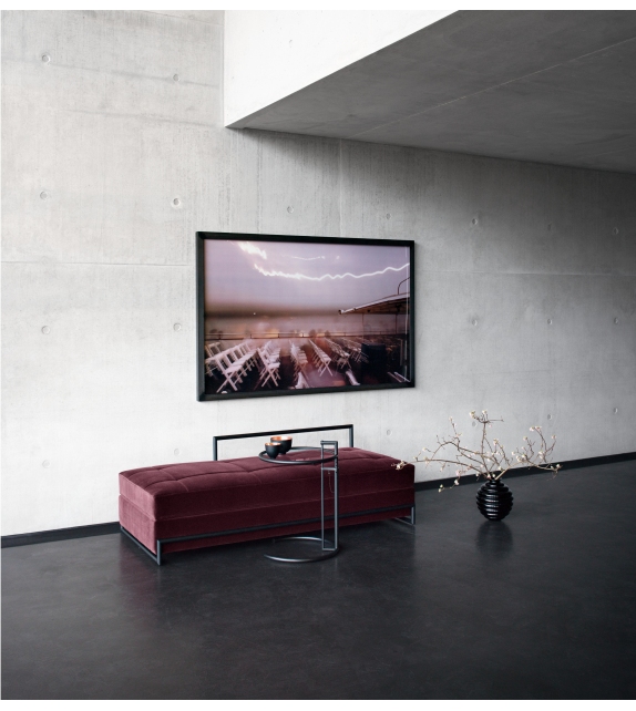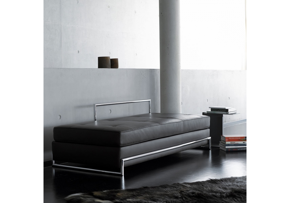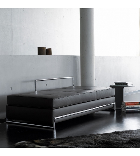 Day Bed designed by Eileen Gray for ClassiCon is a day bed with frame of chromium-plated steel tubing. Beech frame with rubber webbing. Upholstery: Polyurethane with polyester fibre. Loose mattress with Bonell-spring interior, layers of wool feit and polyurethane. Cover in fabric or leather. Available in different finishes and dimensions.
