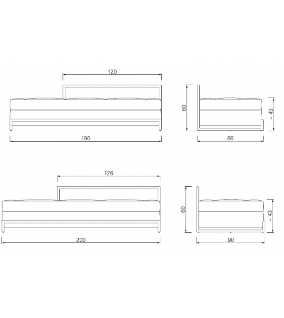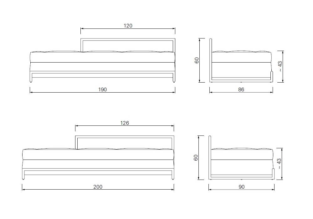 | Dimensions | 190 x 86 x H 60 cm; 200 x 90 x H 60 cm |