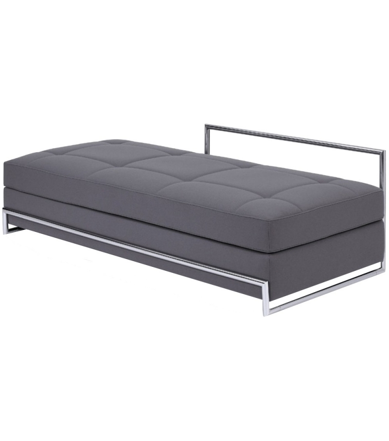 Day Bed designed by Eileen Gray for ClassiCon is a beautiful day bed with frame of chromium-plated steel tubing. Beech frame with rubber webbing. Upholstery: Polyurethane with polyester fibre. Loose mattress with Bonell-spring interior, layers of wool feit and polyurethane. Cover in fabric or leather. Available in different finishes and dimensions.