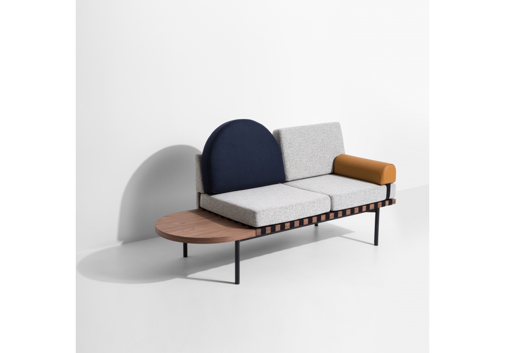 Grid designed by Pool for Petite Friture is a daybed made with a wooden structure, steel base and covering in different types of fabric. Round cushion covered in fabric or leather.