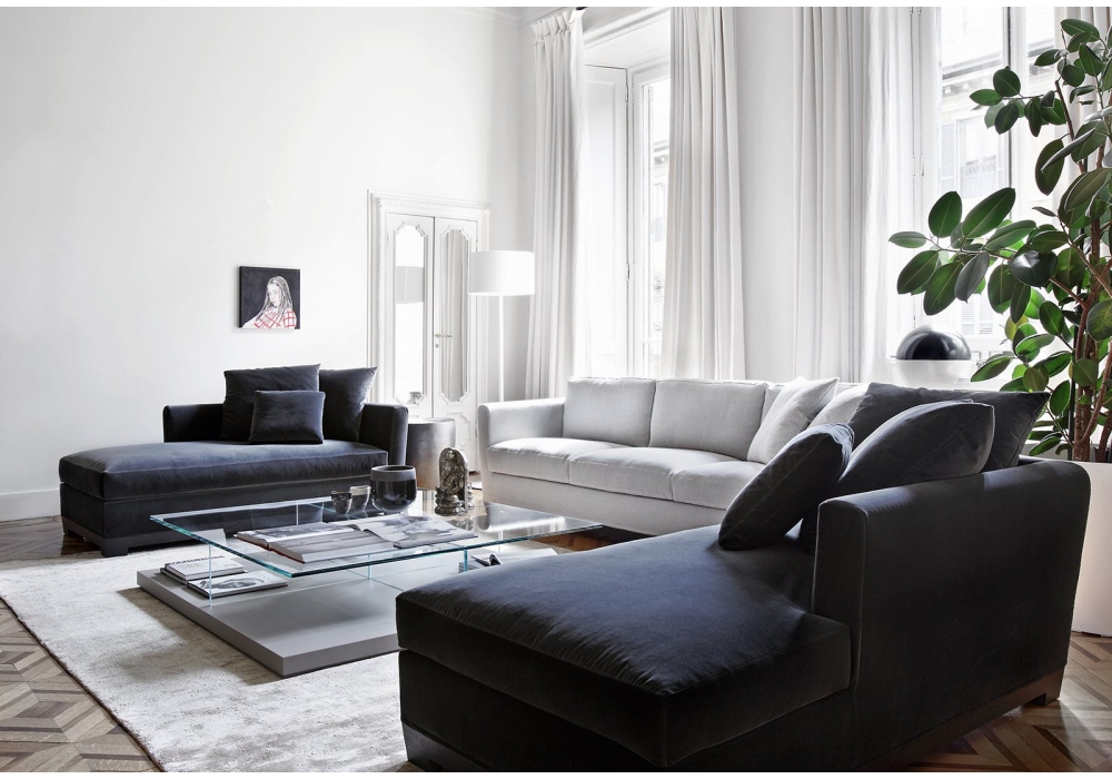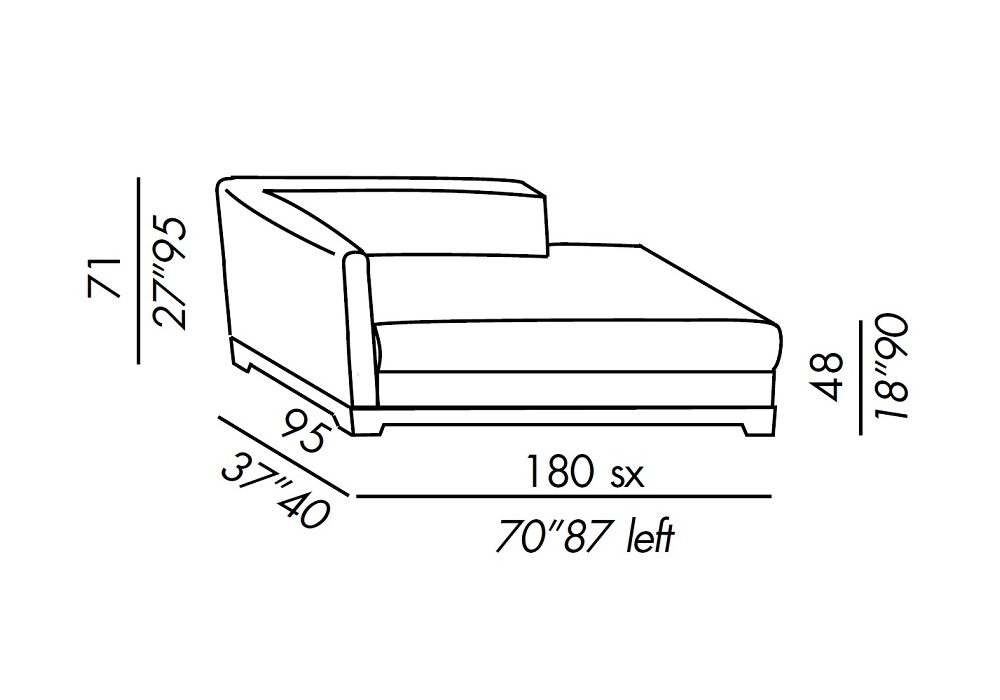 Allen designed by Andrea Parisio for Meridiani is a meridienne with wooden frame and non-deformable polyurethane padding. Upholstery available in fabric or leather. Wooden base.