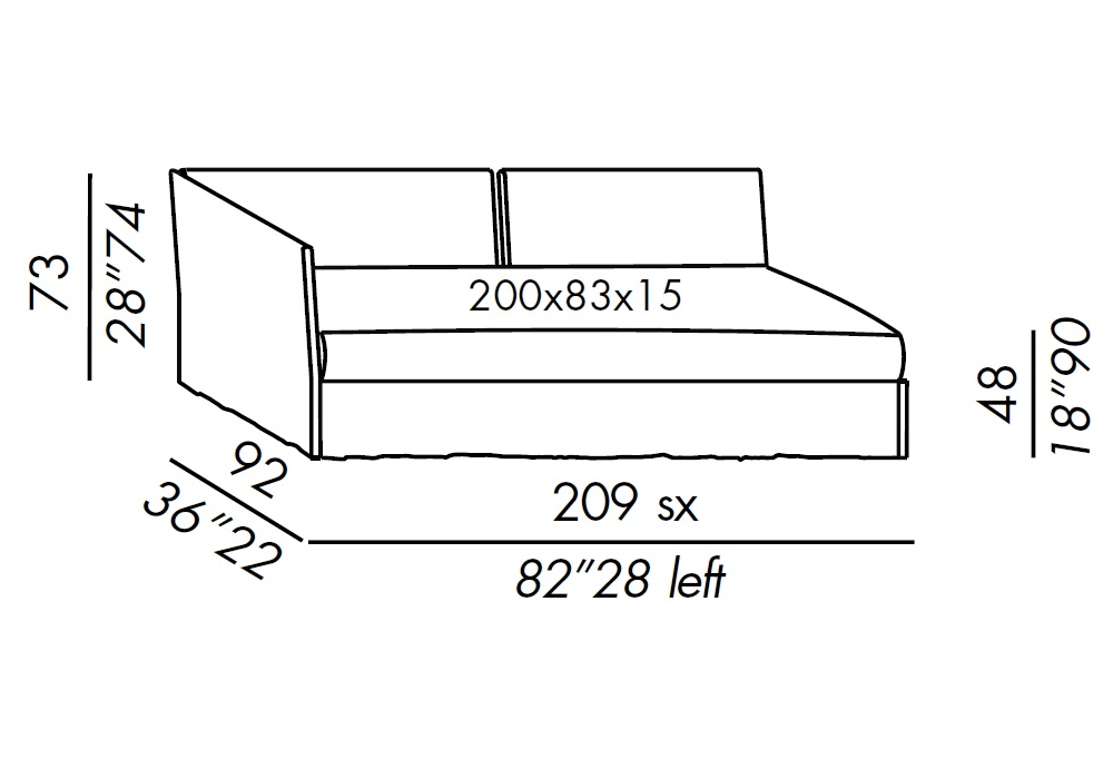 Fox designed by Andrea Parisio for Meridiani is a upholstered daybed with bearing base with metal frame and wooden slats, padded wooden panels in polyurethane. Upholstery available in fabric only. Seat & mattress in polyurethane and anallergic polyester fibre with removable cover.