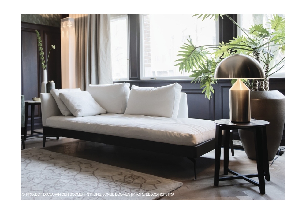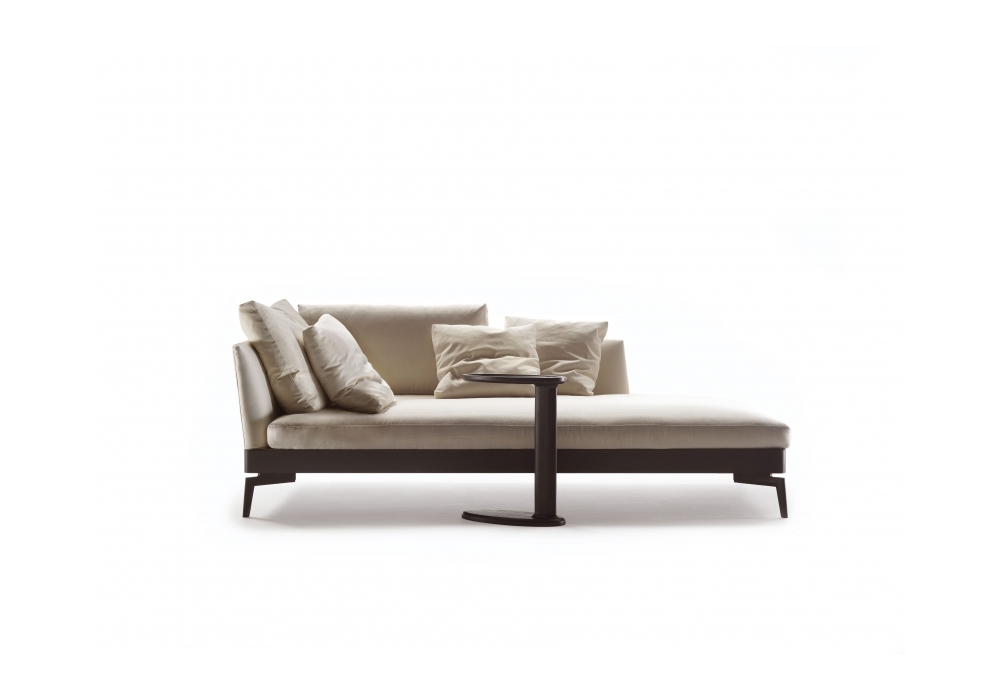 Feel Good designed by Antonio Citterio for Flexform is a dormeuse with seat structure and legs in metal covered in leather, solid wood structure padded with polyurethane and seat cushion in polyurethane foam and Dacron. The dormeuse is upholstered in fabric or leather.