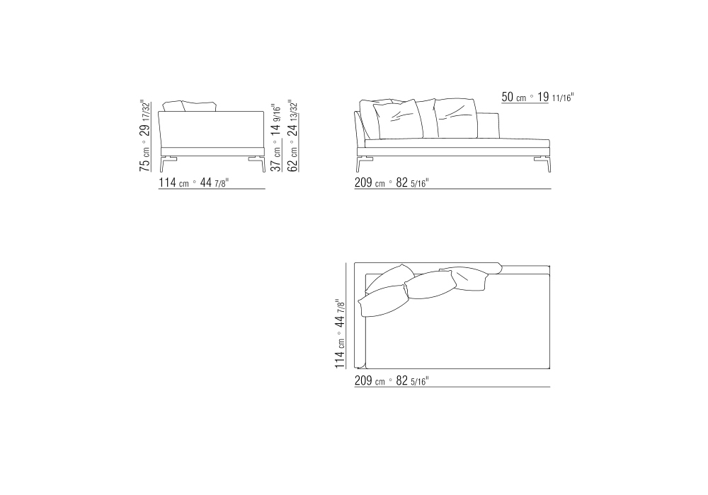 | Dimensions | • 209 x 95 x H 75 cm; • 209 x 114 x H 75 cm |