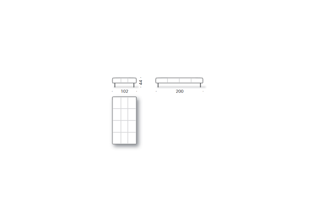 Erei designed by Elisa Ossino for DePadova is a daybed with wooden structure with elastic straps, padding in polyurethane foam in different densities, memory foam and covered polyester wadding.