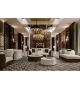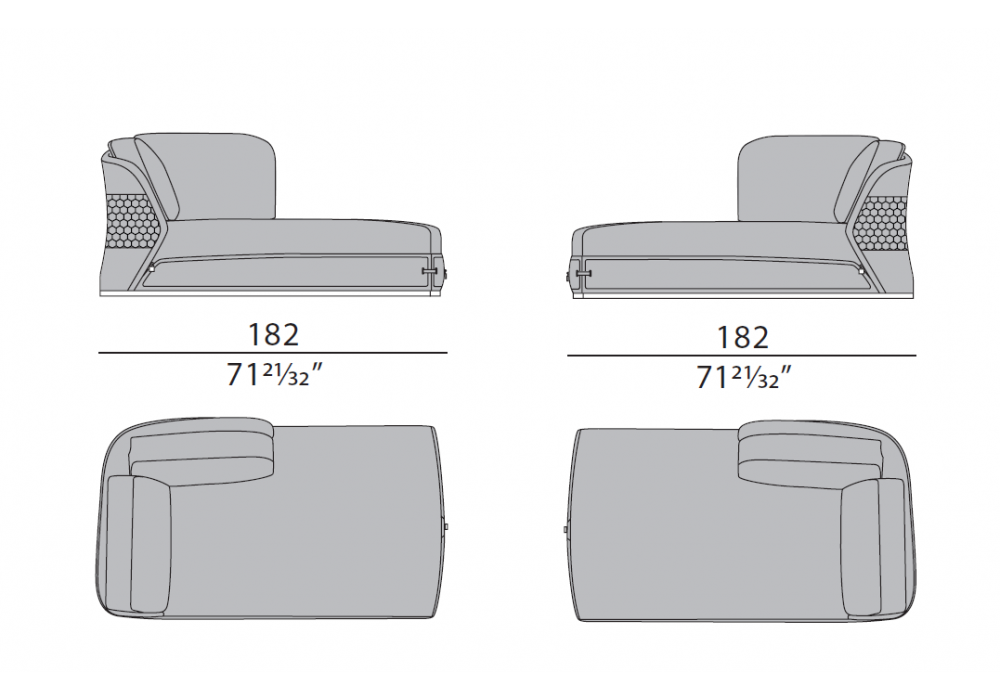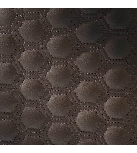 Vogue designed by Andrea Bonini for Turri is a dormeuse with structure in solid wood and plywood padded with multi-density polyurethane foam. Shell in hexagon embroidered leather and cushions in different leathers or fabrics. Base and decorative details in golden metal. Available in right or left version.
