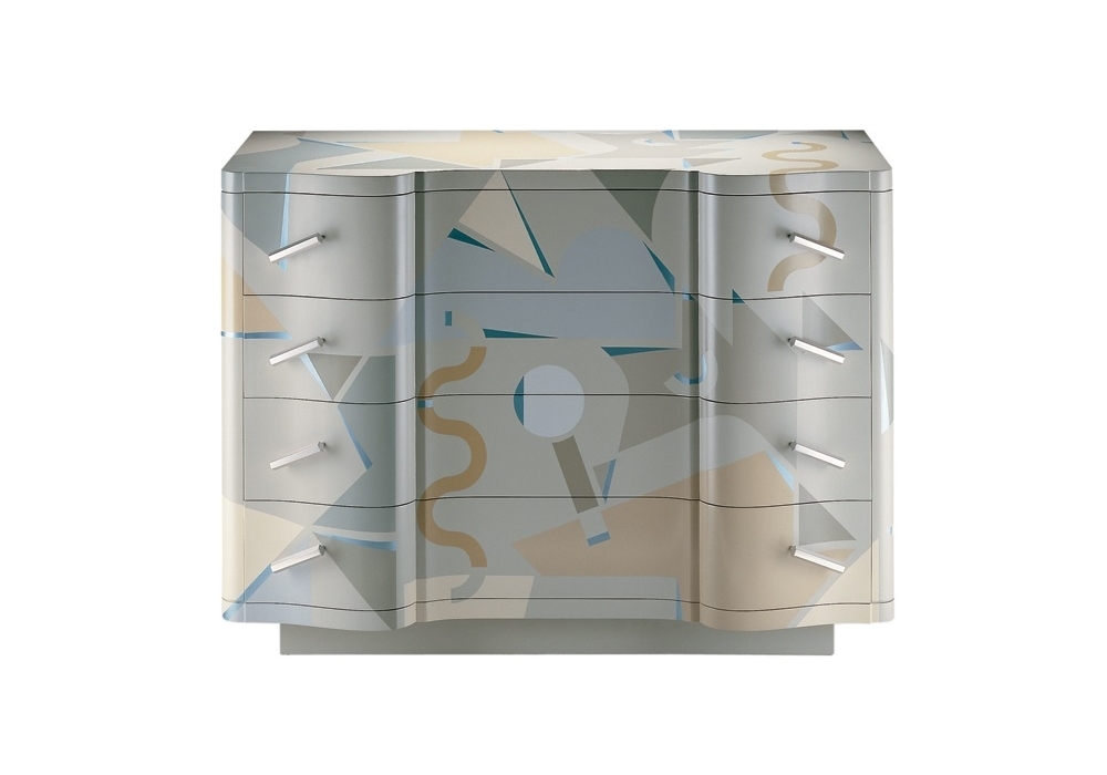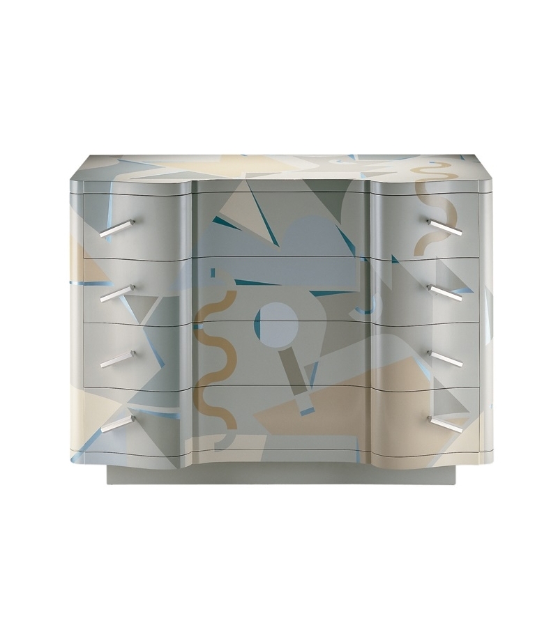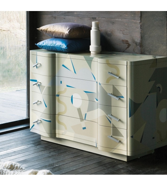 7860 Cetonia designed by Alessandro Mendini for Zanotta Edizioni is a chest of drawers. Signed original. Lacquered wood frame with hand-painted polychrome decoration. Handles in natural anodised aluminum. Drawer interiors in grey lacquered wood.