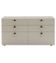 Splendor designed by Rodolfo Dordoni for Flou is a dresser with 6 drawers in glossy cream or matt greige lacquered finish. The handles are available in dipped gold, black nickel or matt burnished. The series also consisting of a bedside table and a tallboy.