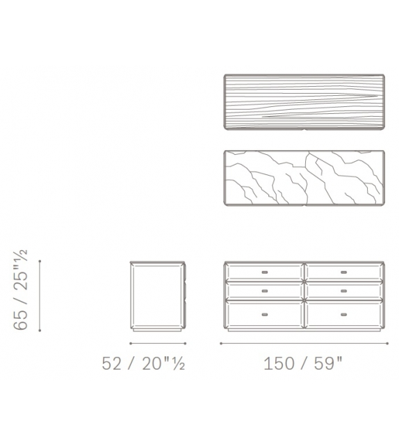 Moondance designed by Roberto Lazzeroni for Poltrona Frau is a chest of drawers with back side structure in Canaletto walnut wood or leather and top in Canaletto walnut or marble. On request, are available compartment organisers for the drawers.