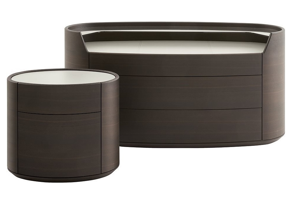 Kelly designed by Emmanuel Gallina for Poliform is a dresser with structure in veneered wood and top available in matt or glossy lacquer, covered in leather or marble.