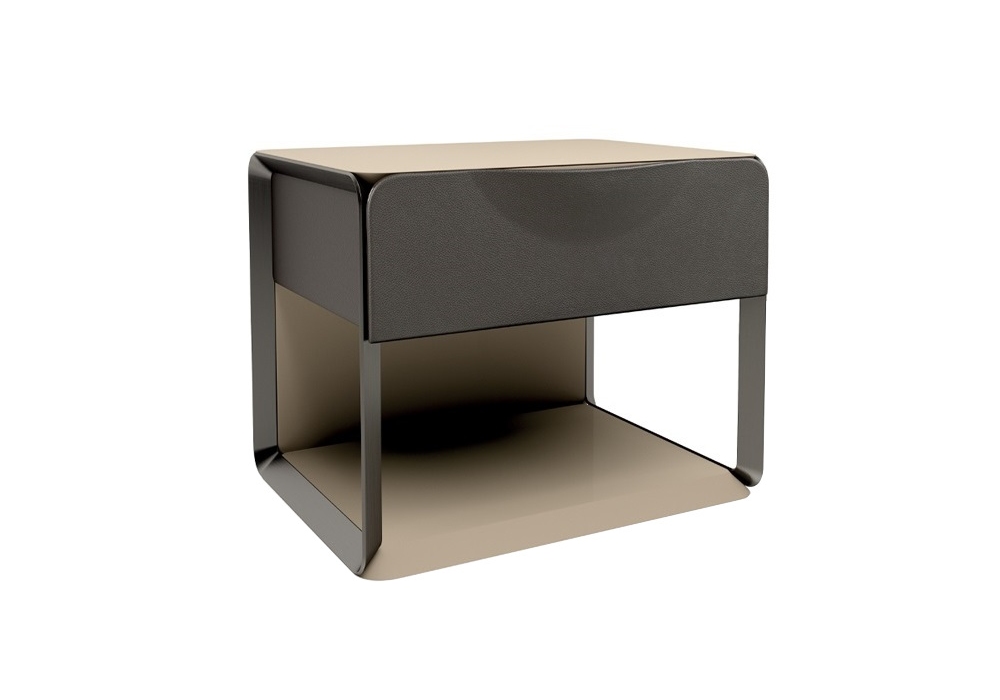 Milano designed by Blengini Ghirardelli for Turri is a bedside table with structure in MDF and plywood upholstered in different leathers. The top is made of wood in a glossy lacquered finish. Available in different models.
