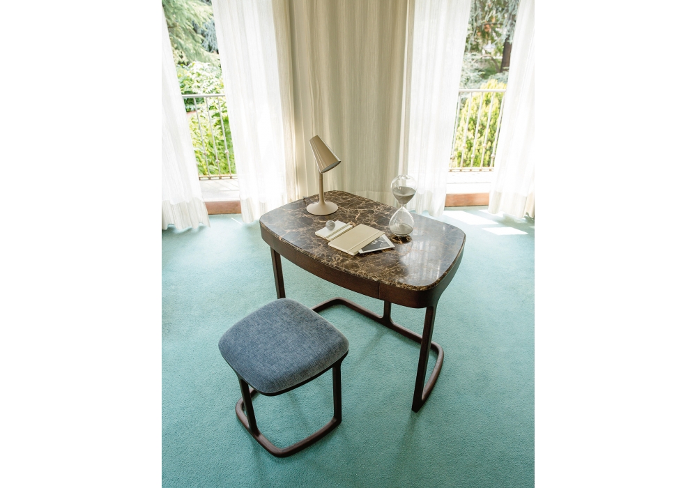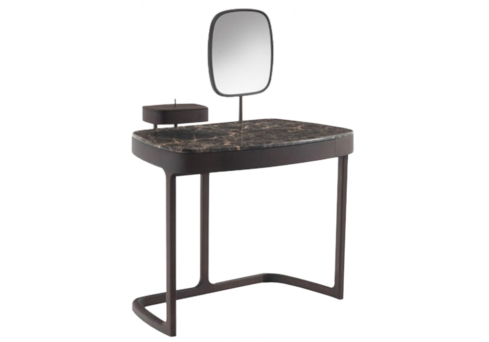 Maskara designed by Emmanuel Gallina for Porada is a dressing table in solid ash wood with marble top and central drawer. Swiveling mirror with drawer included. It can also be matched with the Maskara stool.