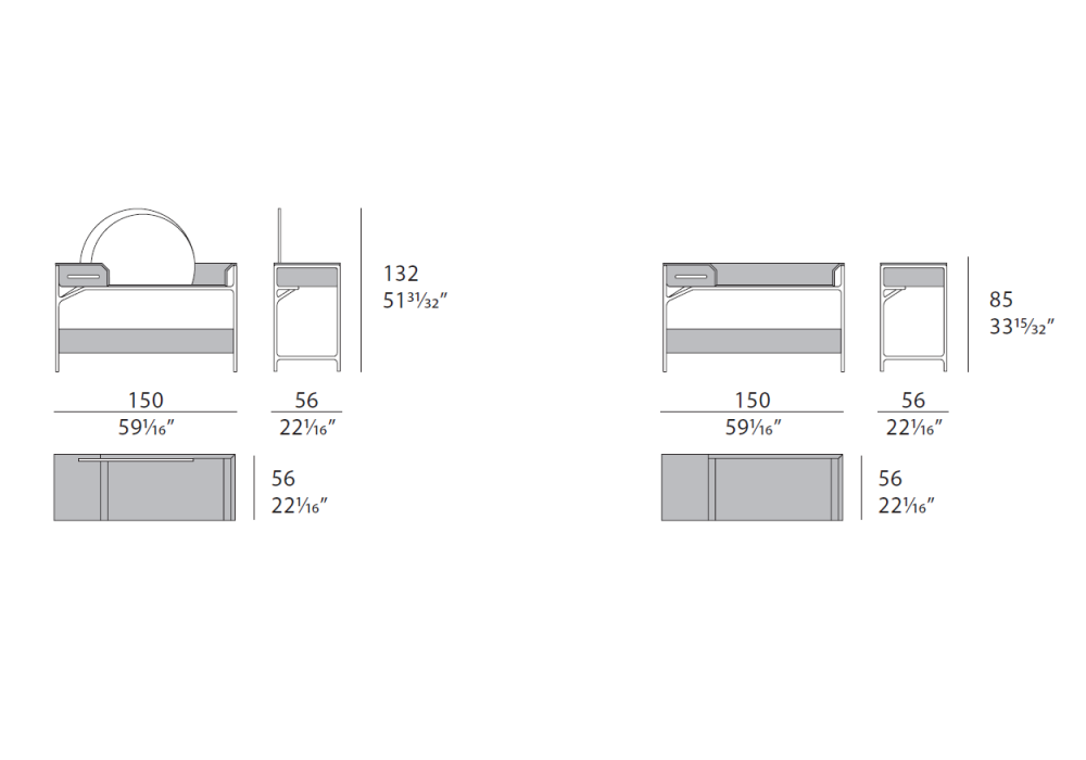 Vine designed by Frank Jiang for Turri is a dressing table with structure in MDF, plywood, solid wood and walnut veneered particle board panels with leather covering. Available in the version with or without mirror.