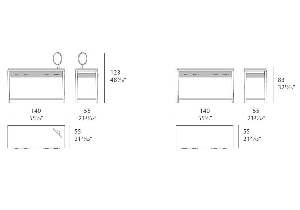 | Dimensions | 140 x 55 x H 123 cm; 140 x 55 x H 83 cm. |