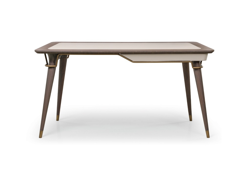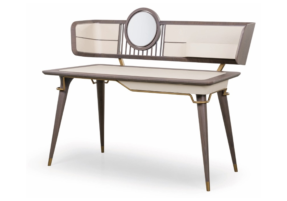 Melting Light designed by Frank Jiang for Turri is a dressing table with structure in MDF, plywood, solid walnut and walnut veneered particleboard panels. Top with leather covering. Metal parts in different finishes. Available in the version with or without mirror.