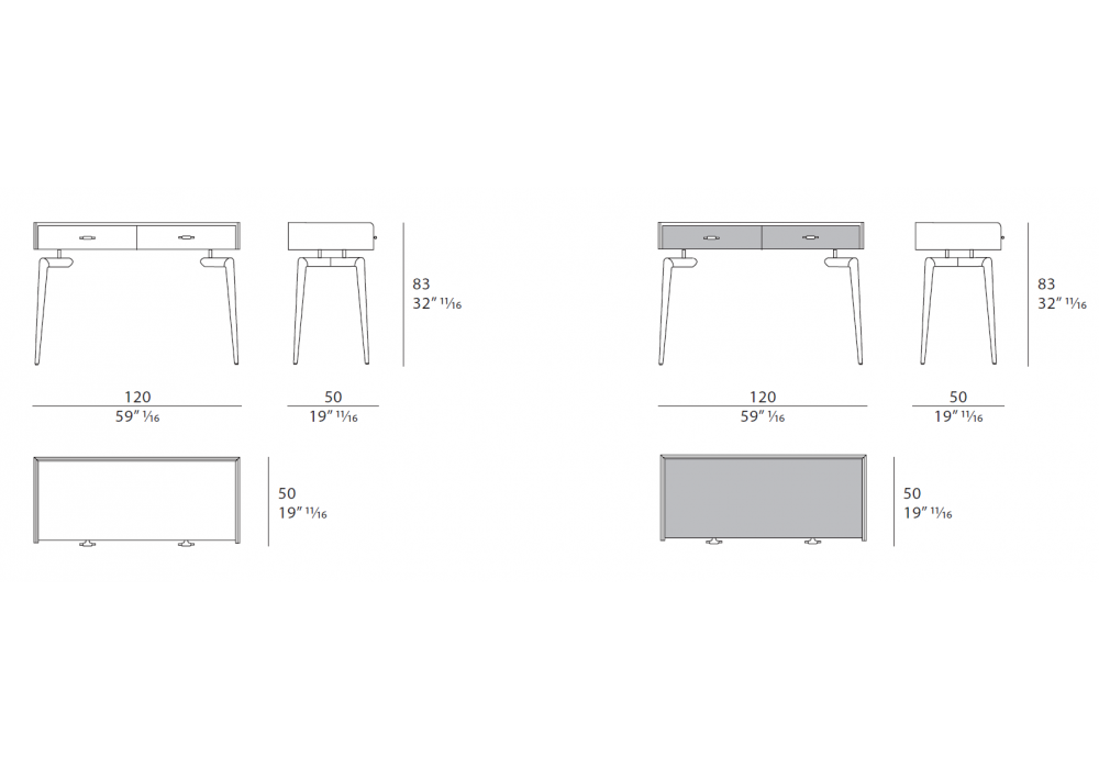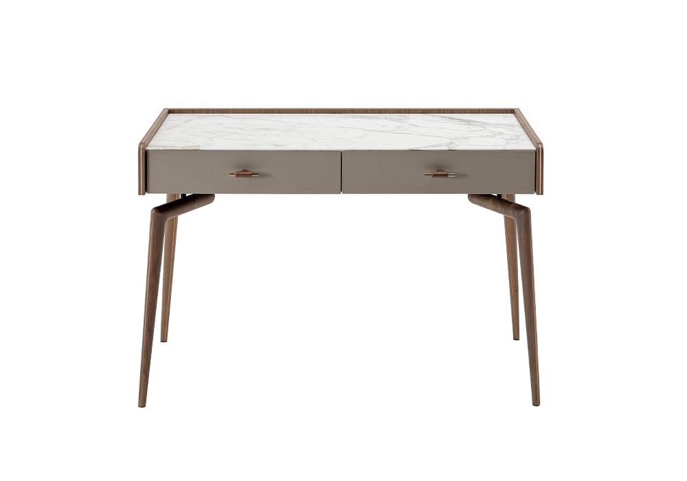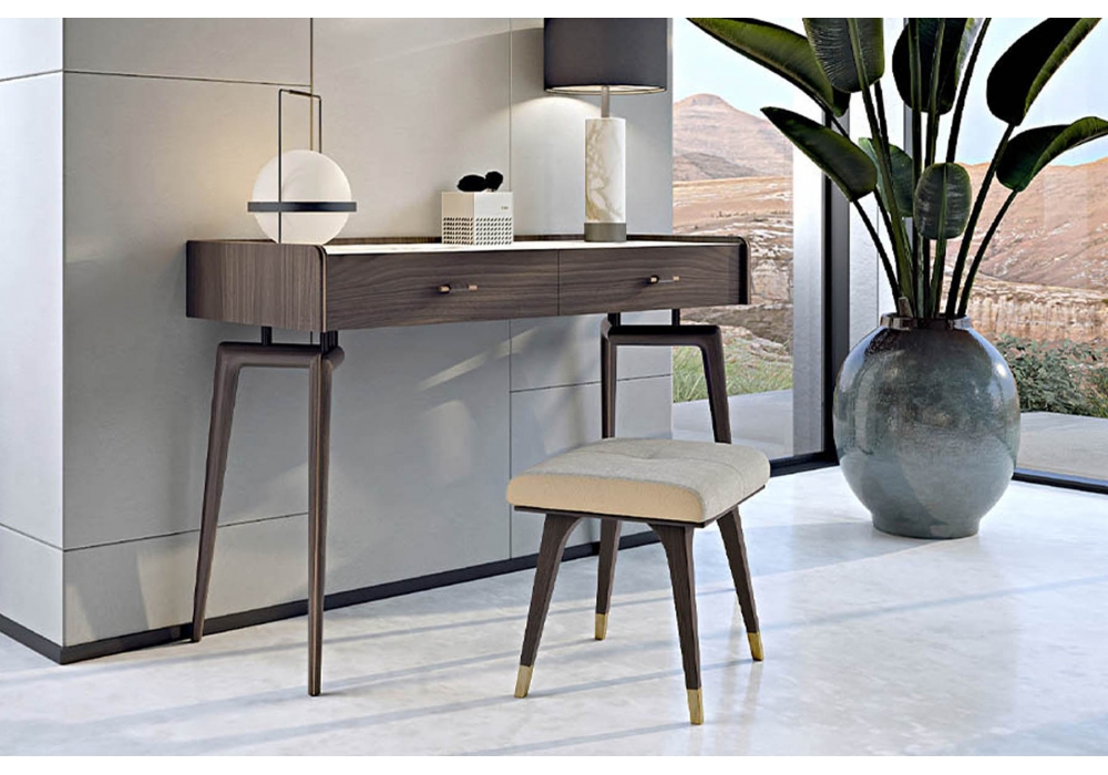 Blues designed by Giuseppe ViganĂ² for Turri is a dressing table with structure in veneered walnut and legs in solid walnut. The fronts can be in walnut veneered wood or covered in leather. Top in marble, leather or walnut veneer.