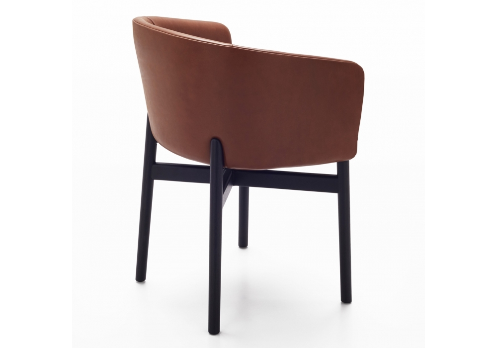 Krusin designed by Marc Krusin for Knoll is a small armchair with a solid ash wood structure with joints and tenons. Padding in polyurethane foam on a metal structure with straps and upholstery in fabric or leather.