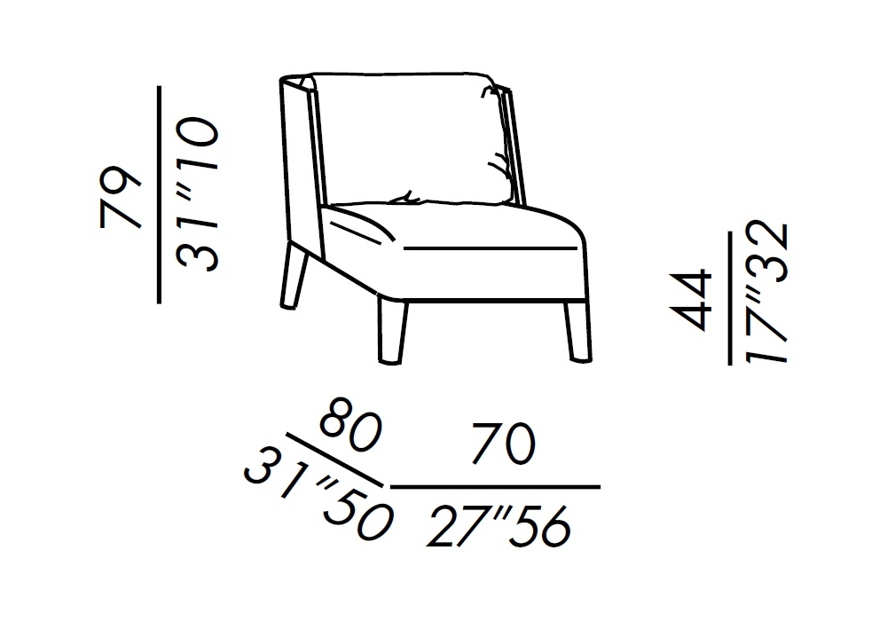 Cecile designed by Andrea Parisio for Meridiani is a padded armchair with fixed cover. Wood and metal frame, padding in moulded polyurethane foam and polyester fiber. Back cushion with reinforced feathers, legs with removable cover in fabric or fixed for leather version.