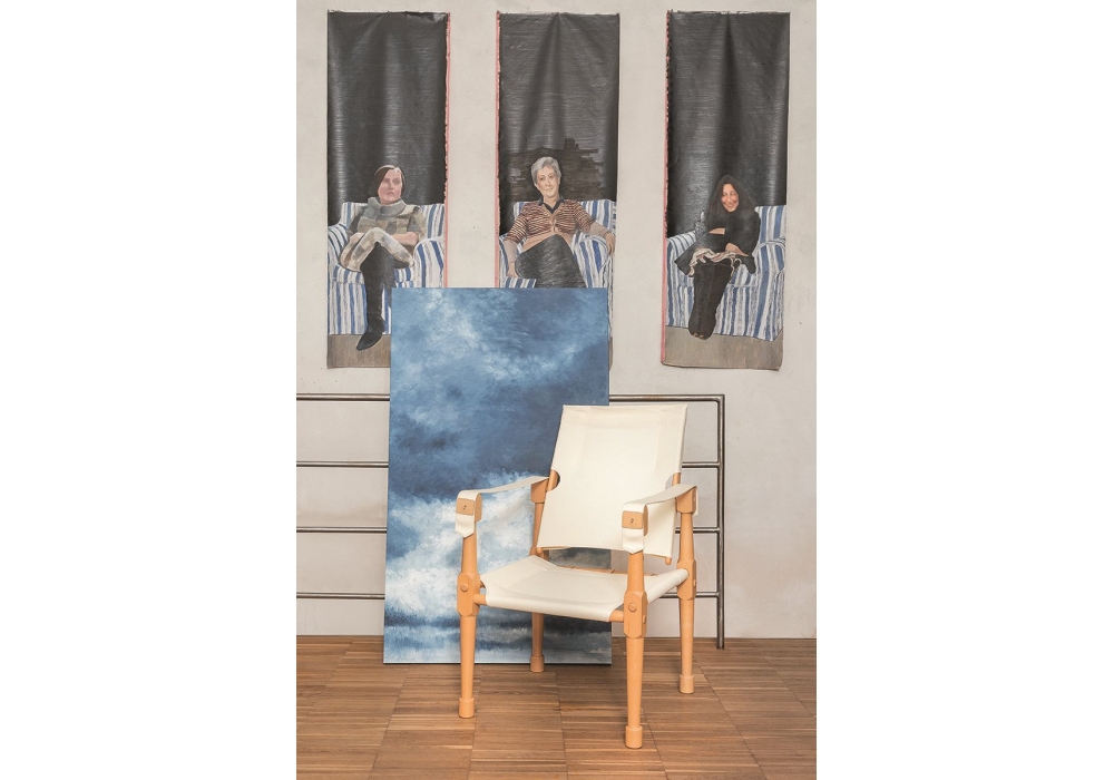 851 Moretta designed by Bernard Marstaller for Zanotta is a demountable small armchair with supple joints. Frame in natural beech. Tilting back. Removable cover in Telaforte or cowhide.