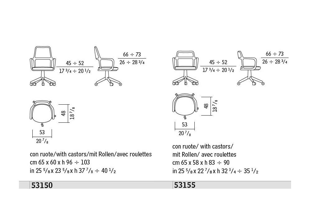 | Dimensions | 65 x 58 x H 83 cm; 65 x 60 x H 96 cm. |