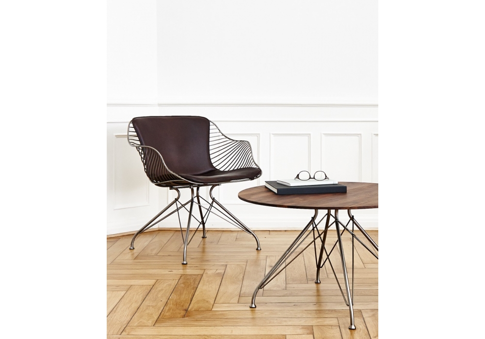 Wire designed by Overgaard & Dyrman for O&D is a lounge chair with structure in either matt black powder coated steel finish or satin chrome plated steel finish. The Wire Collection is available with a selection of 3 types of exclusive leathers (Yellowstone, Matstone or Elegance) in a total of 9 colors.