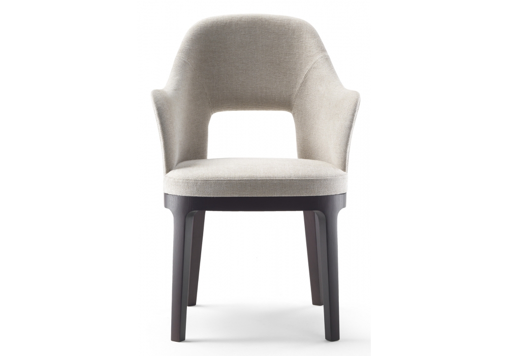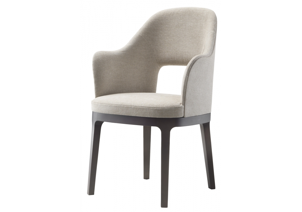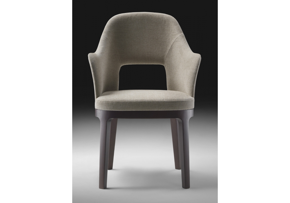 Judit designed by Roberto Lazzeroni for Flexform is a small armchair from the Mood collection. Structure in baydur with polyurethane padding covered with a protective fabric and wood. Legs in solid ash wood available in different finishes. Upholstery in leather or fabric.