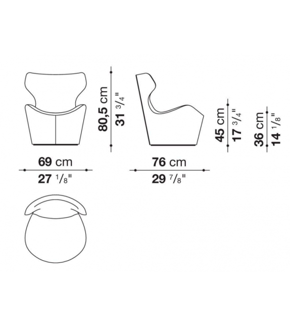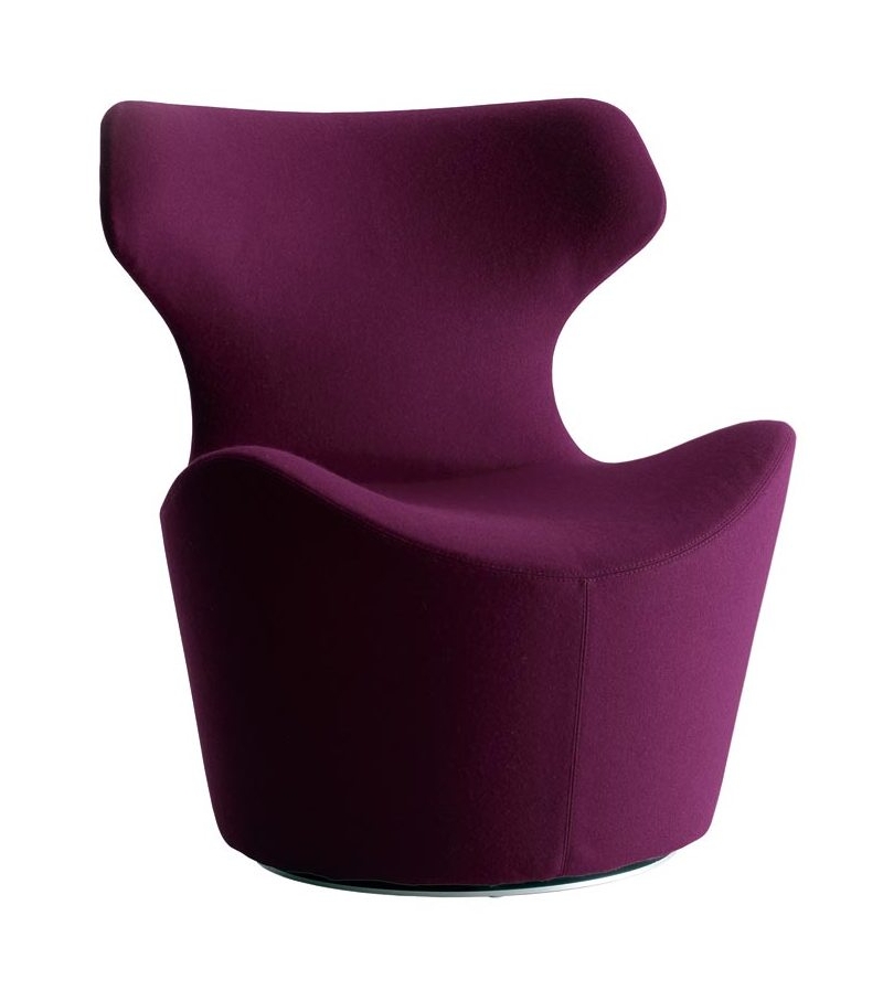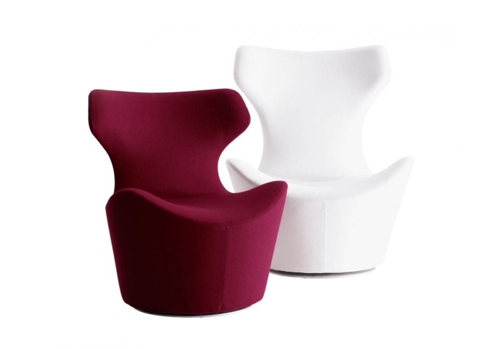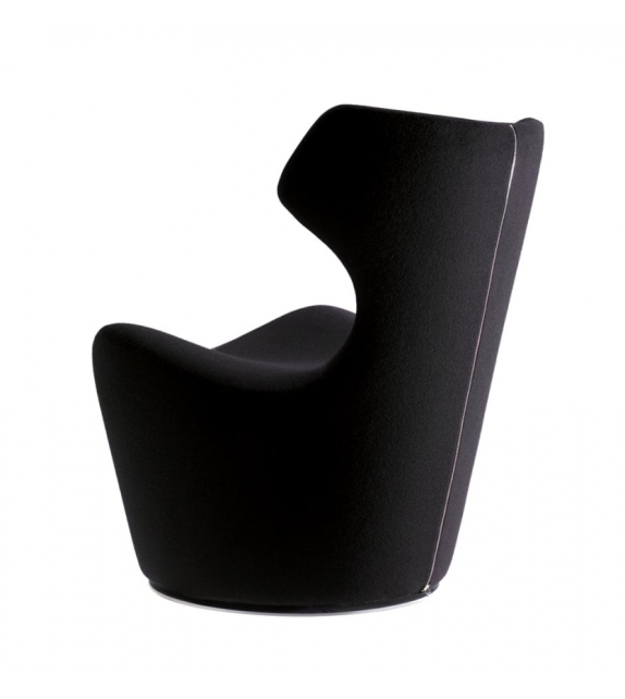 Piccola Papilio designed by Naoto Fukasawa for B&B Italia is a small armchair with a swivel base in metallic grey painted steel laminate and extruded aluminium. Internal frame in steel tubing and steel profiles. Tips in thermoplastic material. Upholstery in fabric or leather.