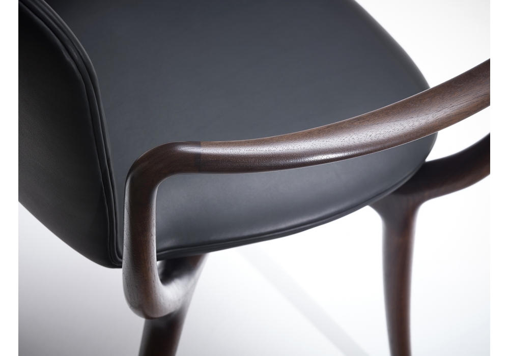 Piruette designed by Roberto Lazzeroni for Ceccotti Collezioni is a small armchair with solid wood structure. Seat and backrest upholstered in leather or natural leather.