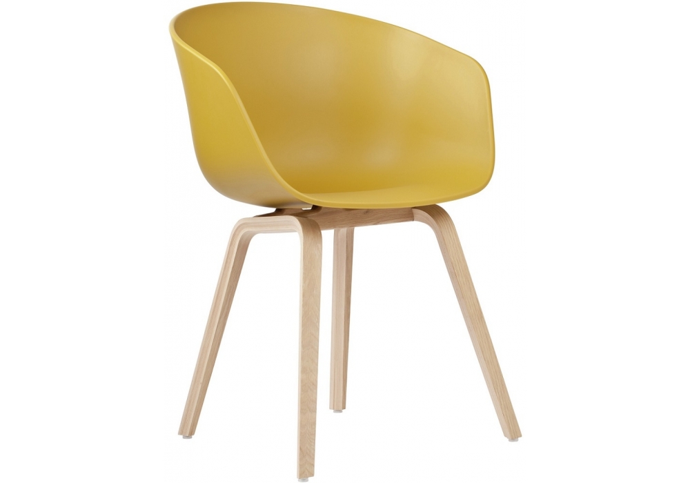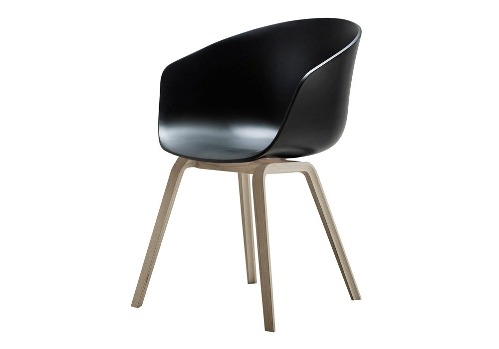 About a Chair AAC 22 designed by Hee Welling & HAY for Hay is a small armchair with injection molded polypropylene shell in solid color with armrest and base in shaped plywood. Available in different finishes.
