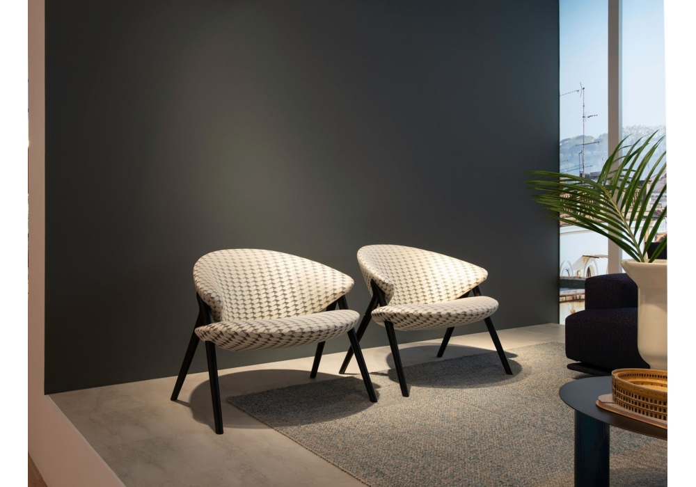 883 Oliva designed by Constance Guisset for Zanotta is a small armchair with solid maple wood structure and removable cover in leather or fabric.