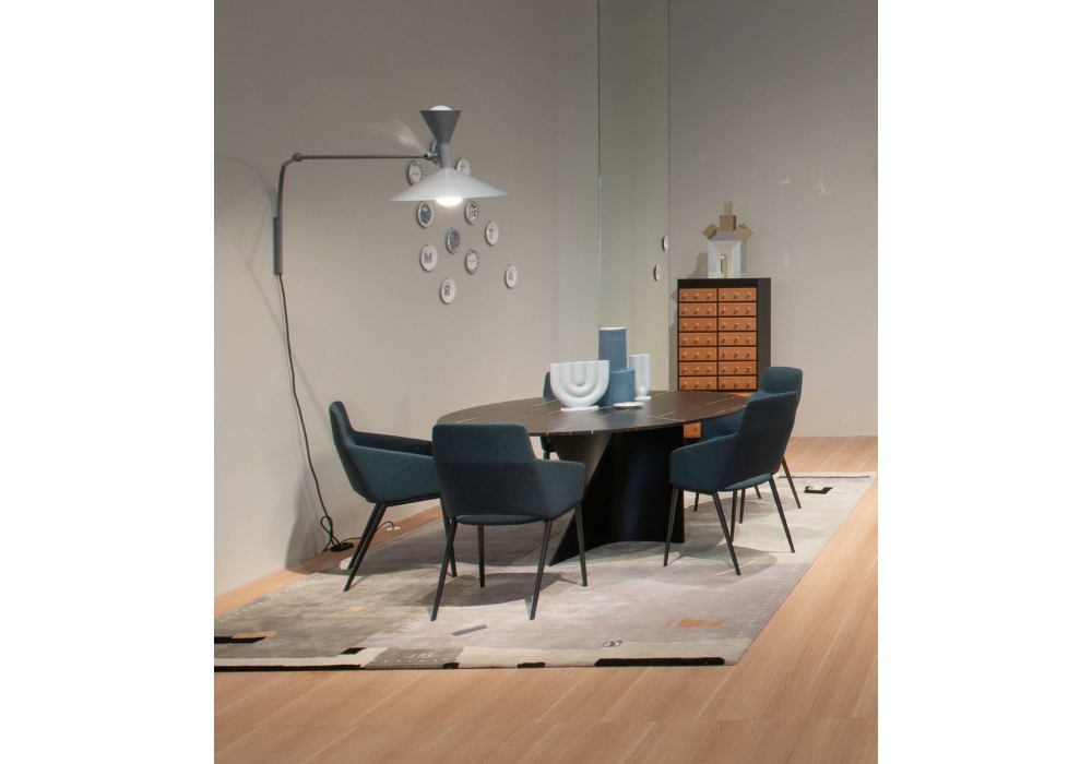 2261 Tusa designed by Rodolfo Dordoni for Zanotta is a small armchair available with high or low back. Legs in black painted steel. Upholstered seat and back with removable fabric or leather cover.