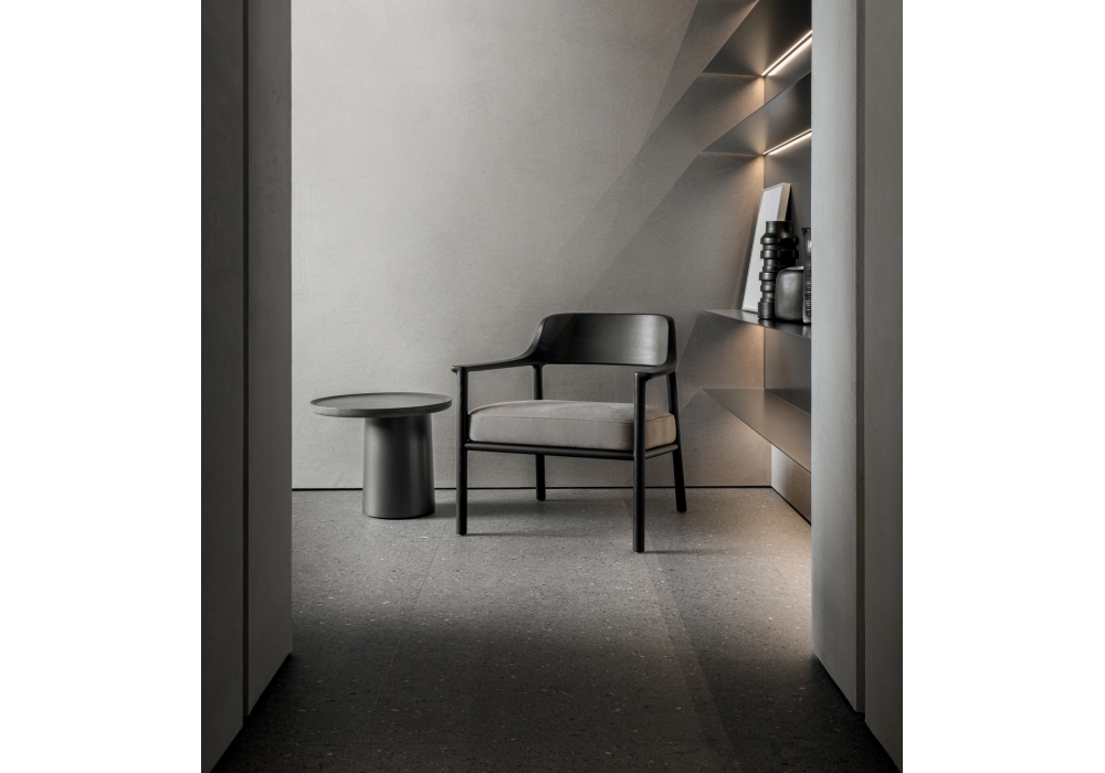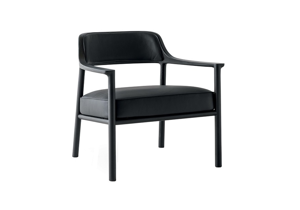 Walter designed by Vincent Van Duysen for Molteni&C is a small armchair made with structure in eucalyptus or black stained ash and upholstery in leather or fabric in different finishes. Available with or without back cushion.