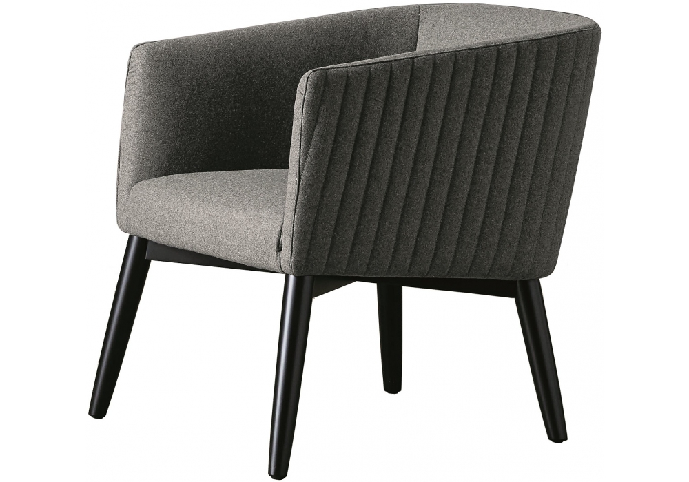 Lolyta Due Stripe designed by Andrea Parisio for Meridiani is a small armchair with legs in black matt lacquered beech. Seat cushion in polyurethane with removable plain cover and padded frame with a vertical striped quilted pattern.